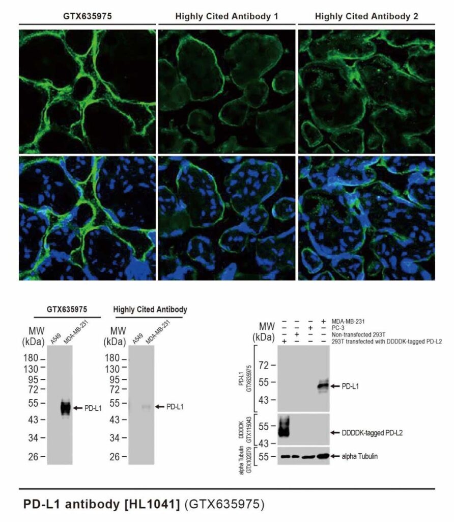 GeneTex has worked with independent labs to validate the quality of its PD-L1 recombinant rabbit monoclonal antibodies (GTX636033 and GTX635975). The data demonstrates the antibody’s superior signal-to-noise ratio.