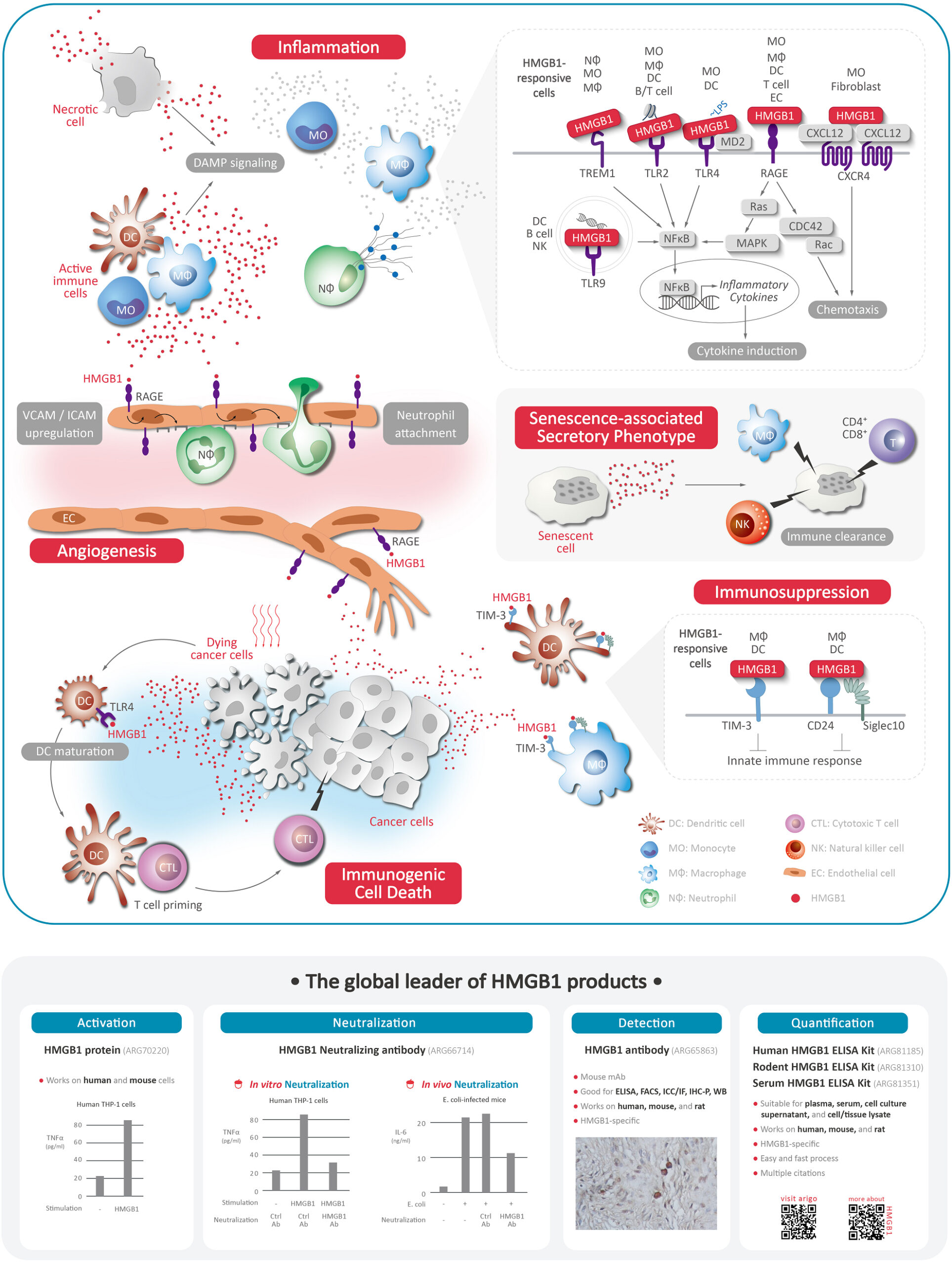 arigo Biolaboratories: HMGB1 mediates inflammation and is linked to infection, sepsis, myocardial infarction, and inflammatory diseases. It is also an ICD marker used to assess the efficacy of anti-cancer therapies.
