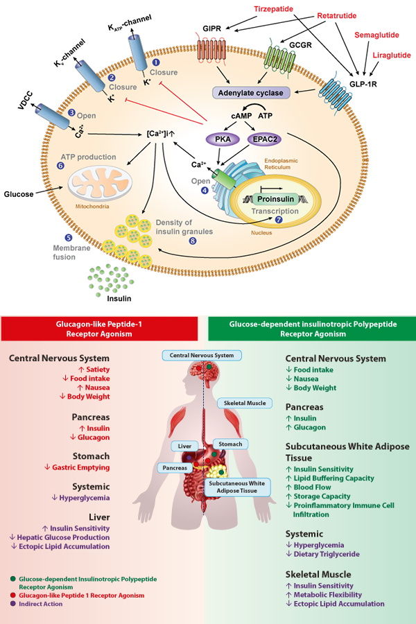 The latest breakthrough in incretin-based therapies is GLP-1/GIP/Glucagon receptor triagonists. These drugs take a triple-action approach by activating: