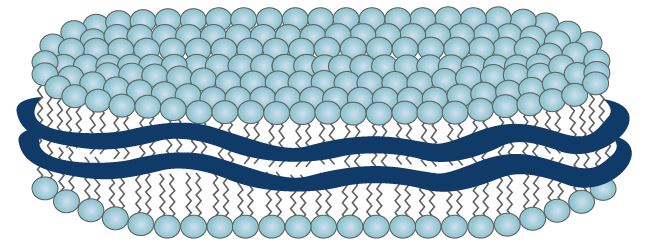 The size and shape of the chaperone molecule is a critical factor in Lipodisq™ formation and also defines the properties of the particle, i.e. particle size and/or its biodegradability. Internal properties of the phospholipid membrane support the disposition and stabilization of drug molecule candidates and preserve the native conformation of membrane-bound molecules. The resulting encapsulated actives are rendered water-soluble and optimized for intracellular penetration/delivery via endosomal uptake mechanisms.