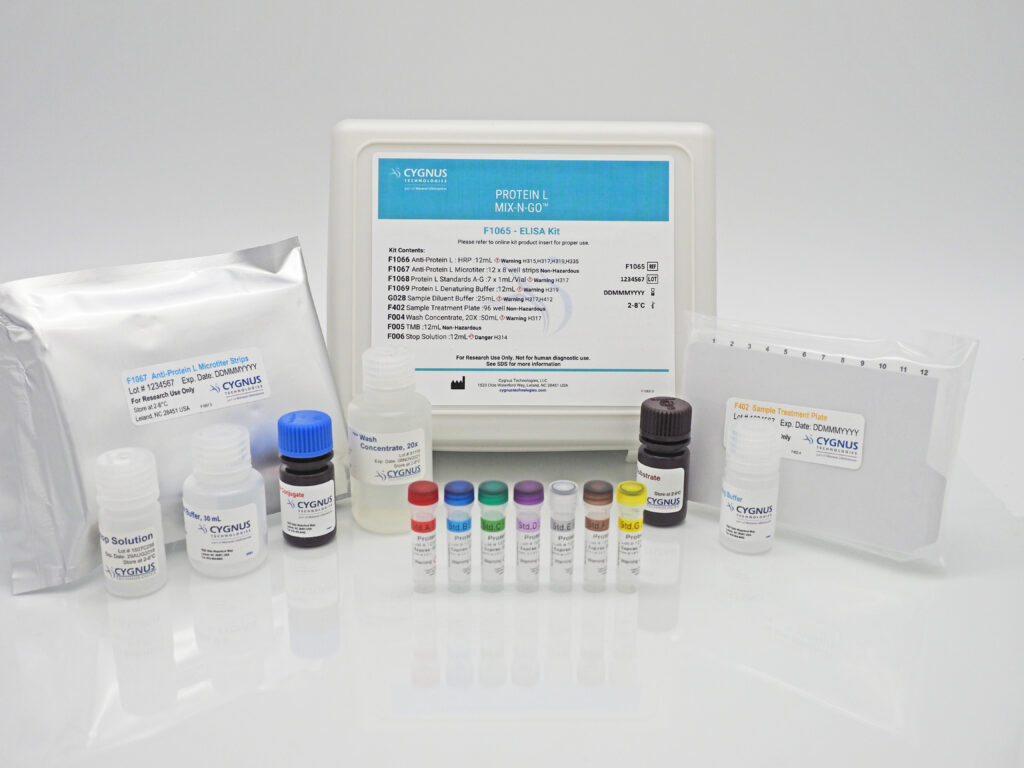Cygnus Technologies’ Protein L Mix-N-Go™ ELISA Kits enable fast and accurate assessments of residual Protein L remaining in your antibody fragment drug products.