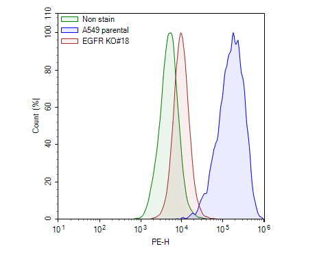 Expression of human EGFR in the EGFR-KO A549 Cell line, assessed by flow cytometry