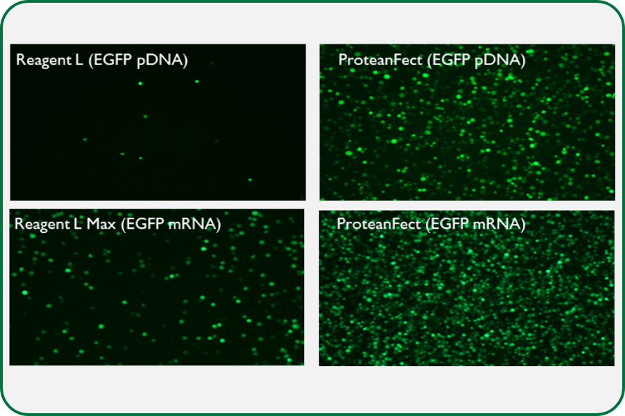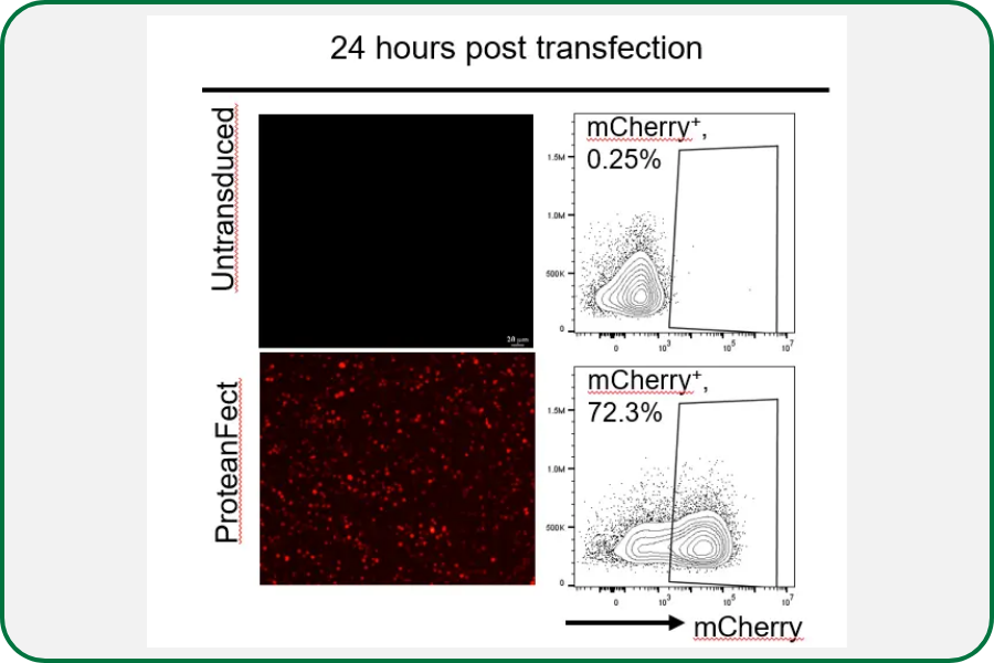 Figure 1. ProteanFect achieves high transfection efficiency with pDNA/mRNA in Jurkat T Cells.