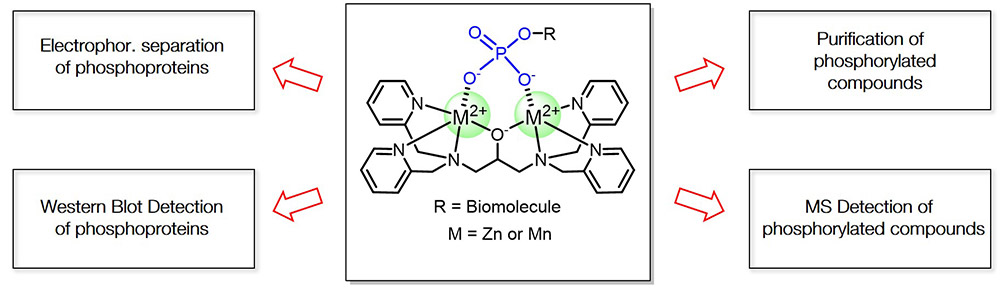 A series of reagents utilizing Phos-tag™ from Fujifilm Wako can be used in the electrophoretic separation of phosphoproteins by SDS-PAGE, specific detection of phosphoproteins via Western Blot, highly sensitive detection of phosphorylated compounds via mass spectrometry, purification of phosphorylated proteins and selective staining of phosphoproteins in gels.
