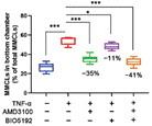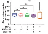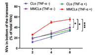 TNF-α (HY-P7058) treatment upregulates the expression of adhesion molecules on the surface of HUVECs. Additionally, by increasing the expression of CXCR4 and VLA-4, it enhances the inflammatory chemotaxis of MMCLs, greatly improving their transendothelial migration efficiency.