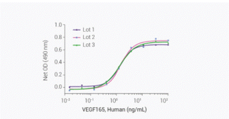 The ED50 values of MCE’s human VEGF165 from three distinct lots are highly consistent.