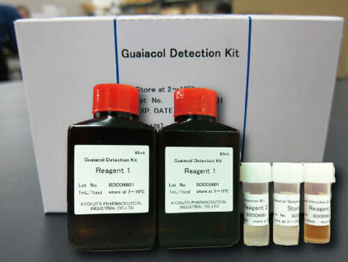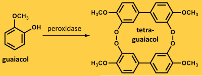 In the presence of peroxidase and H202, colorless guaiacol forms brown-colored tetraguaiacol.