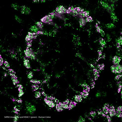 Right: SATB2/HDAC1 MolBoolean staining in human colon