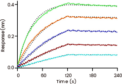 Loaded Recombinant Human DcR3/TNFRSF6B Protein, hFc Tag (Cat. No. 10224-H02B) on ProA Biosensor, can bind Recombinant Cynomolgus, Rhesus TL1A/TNFSF15 Protein, His Tag (Cat. No. 91015-C07H1) with an affinity constant of 4.02 nM as determined in BLI assay (Sartorius Octet RED384) (Routinely tested).