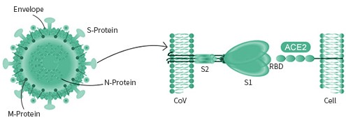 The spike protein is particular important as its interaction with the host cell receptor is the pivotal step during the infection. Different viruses may utilize different surface receptor for binding. The HCOV- NL63, SARS-COV, and the new SARS-COV-2 viruses all use the ACE2 receptor, while the MERS-COV virus selectively binds with the DPP4 receptor. The HCOV-229E virus targets APN receptor. The rest two common coronavirus, HKU1 and OC43 bind with O-ac Sia.